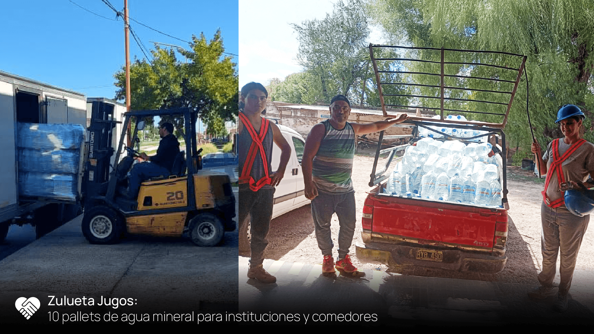 - Zulueta Jugos: 10 pallets de agua mineral.