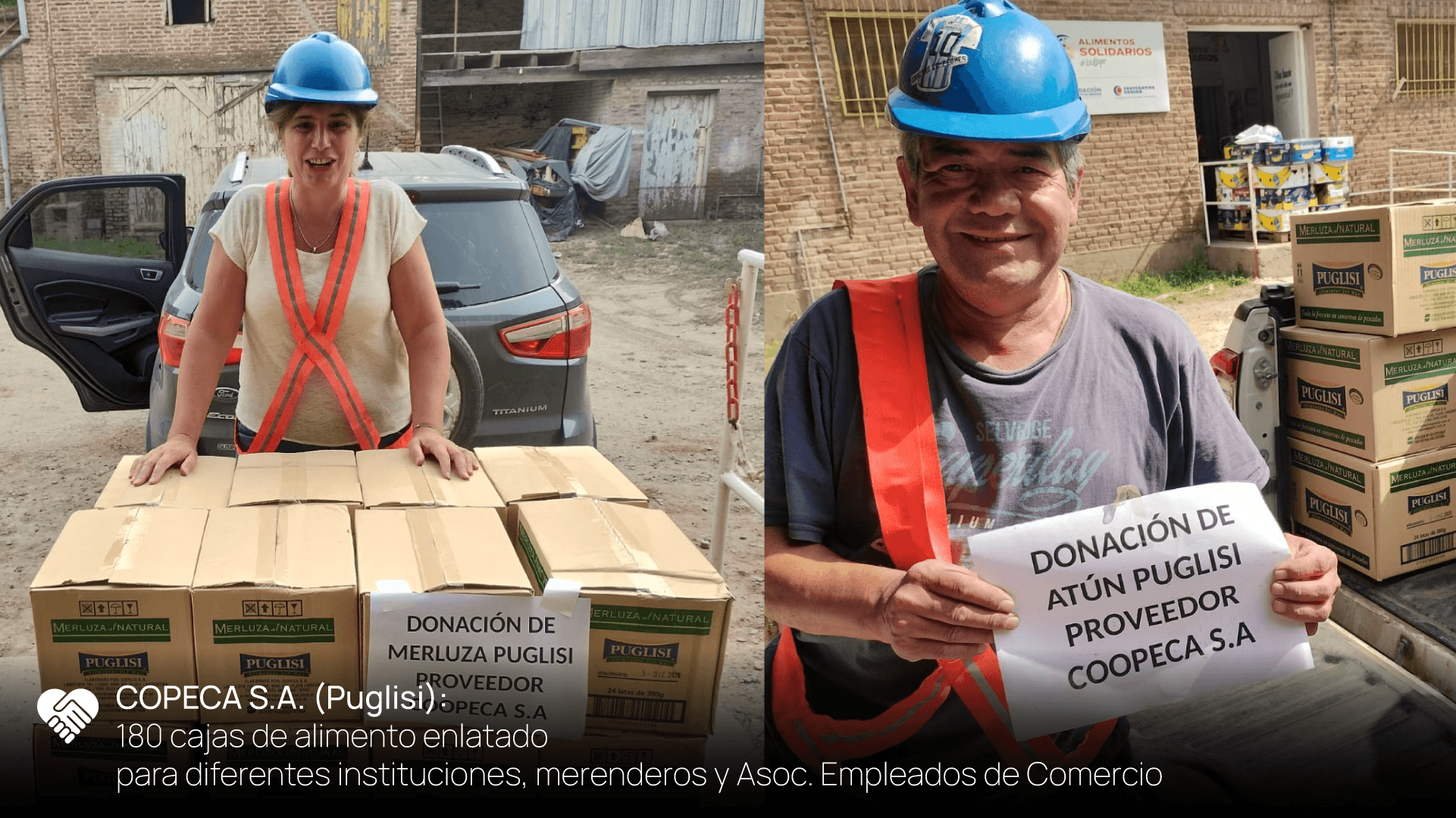 Simultáneamente articulamos importantes donaciones que recibimos de proveedores y cooperativas de distintos grados que fuimos coordinando para entregar a: Municipalidad de Bahía Blanca, Centro Comunitario San Roque, Cáritas, Los Pibes del Don Bosco, Sindicato de Empleados de Comercio, El Hogar del Anciano, IREL, centros comunitarios y comedores.