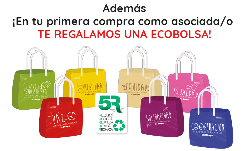 Promoción exclusiva para la sucursal 136 de Avenida 7 entre 57 y 58 Nº 1224, La Plata. Se obsequia una Ecobolsa “Valores” por asociada/o en su primera compra. Vigencia desde el 17/12 al 31/01/2022 inclusive o hasta agotar stock de 7.000 Ecobolsas.